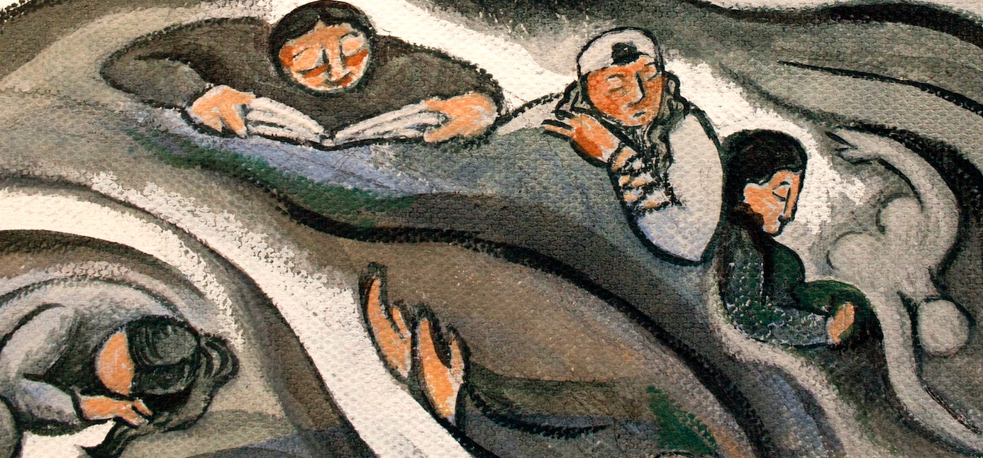By visually quoting a historical work of art, a painting anchors a new rendition in relation to that which came before, and that which will follow. Though the ripple effects of the Shoah may peter out in the minds of younger generations, this is an arc in time that cannot be erased. Whether we hail history or not, still it unfolds and washes over us. We are both downstream and upstream in the river of time and events.