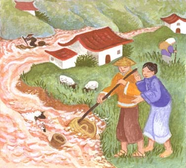 Here are several illustrations from another “leveled reader” that I illustrated some years ago. Titled “The Wishing Stone,” the story hails from Chinese folklore, and was adapted for young readers. This is a way to introduce children to both new vocabulary and a new culture . . . all simplified for elementary school students, and distributed through an educational publisher.